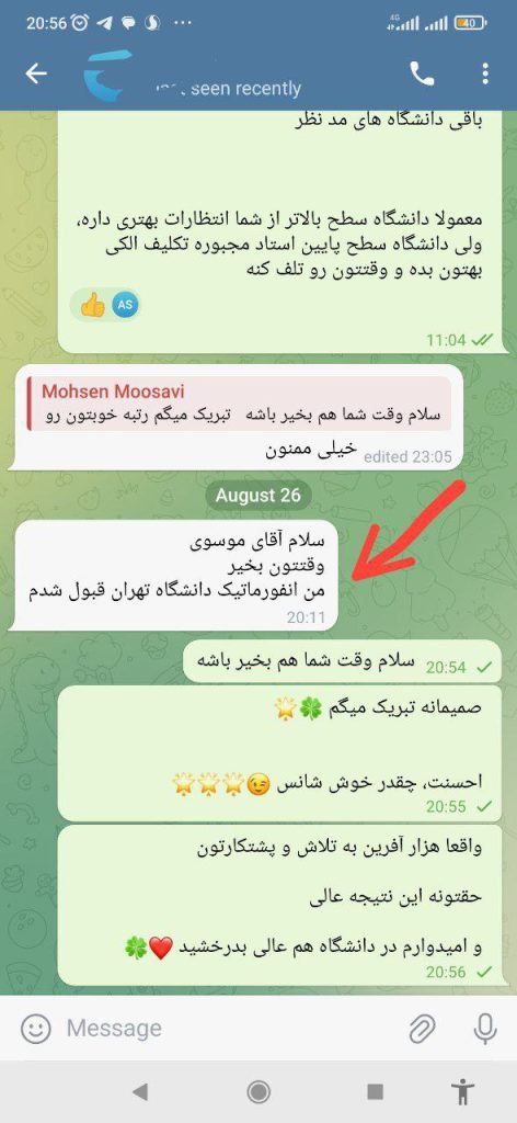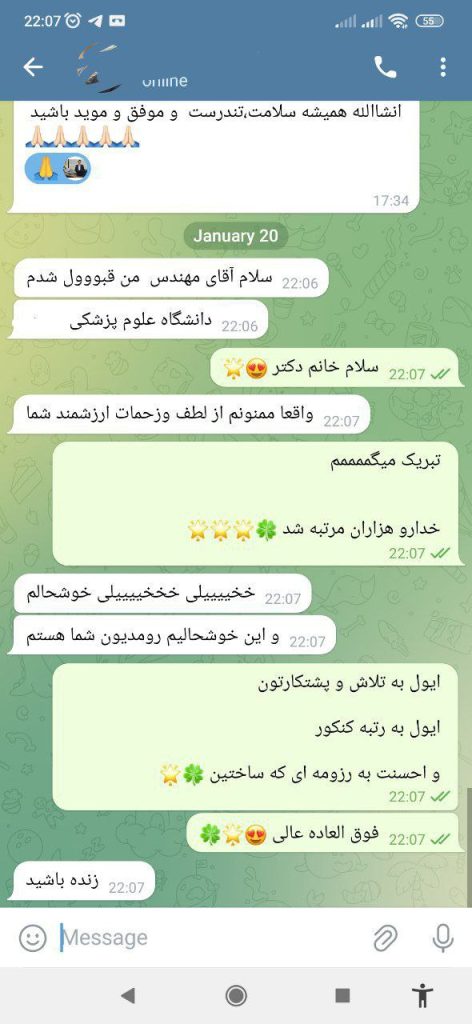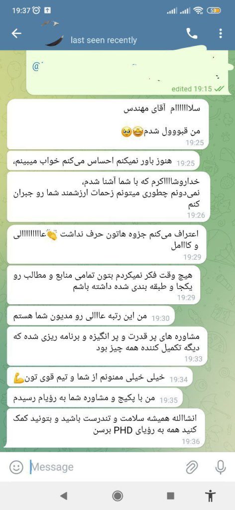 ![]() از قبولی های دکتری 😍❤️ 🆘 جزوه اینطوری توی مدت زمان کم شما رو به نتیجه میرسونه 😉👌 ⚠️بزودی مصاحبه ها درگروه قرار میگیره⚠️ ممنون از حمایت هاتون و مطمعنا با افتخار تیم ما از افرادی که درخشان قبول بشن حمایت میکنه تا در تیم مشاوره و تدوین جزوات باشن 😉 صمیمانه قبولی «دکتری مدیریت اطلاعات سلامت» رو به شما تبریک میگم 🍀🌼 |